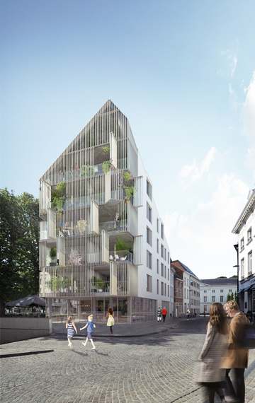Ontwikkelaar CORES zorgt ervoor dat het nieuwe gebouw een hedendaags ontwerp krijgt en toch mooi in de historische omgeving past. Vlakbij is namelijk de Sint-Romboutstoren, UNESCO-werelderfgoed. Het nieuwe pand komt in de bufferzone ervan, ofwel in een gebied dat in dit geval de erkende Sint-Romboutstoren omringt en waarin extra regels gelden over het gebruik en de ontwikkeling ervan. Via een architectuurwedstrijd, maar ook onze inspraak, die van UNESCO en Erfgoed Vlaanderen zorgt de ontwikkelaar ervoor dat het nieuwe gebouw netjes in dit stukje Mechelen past.